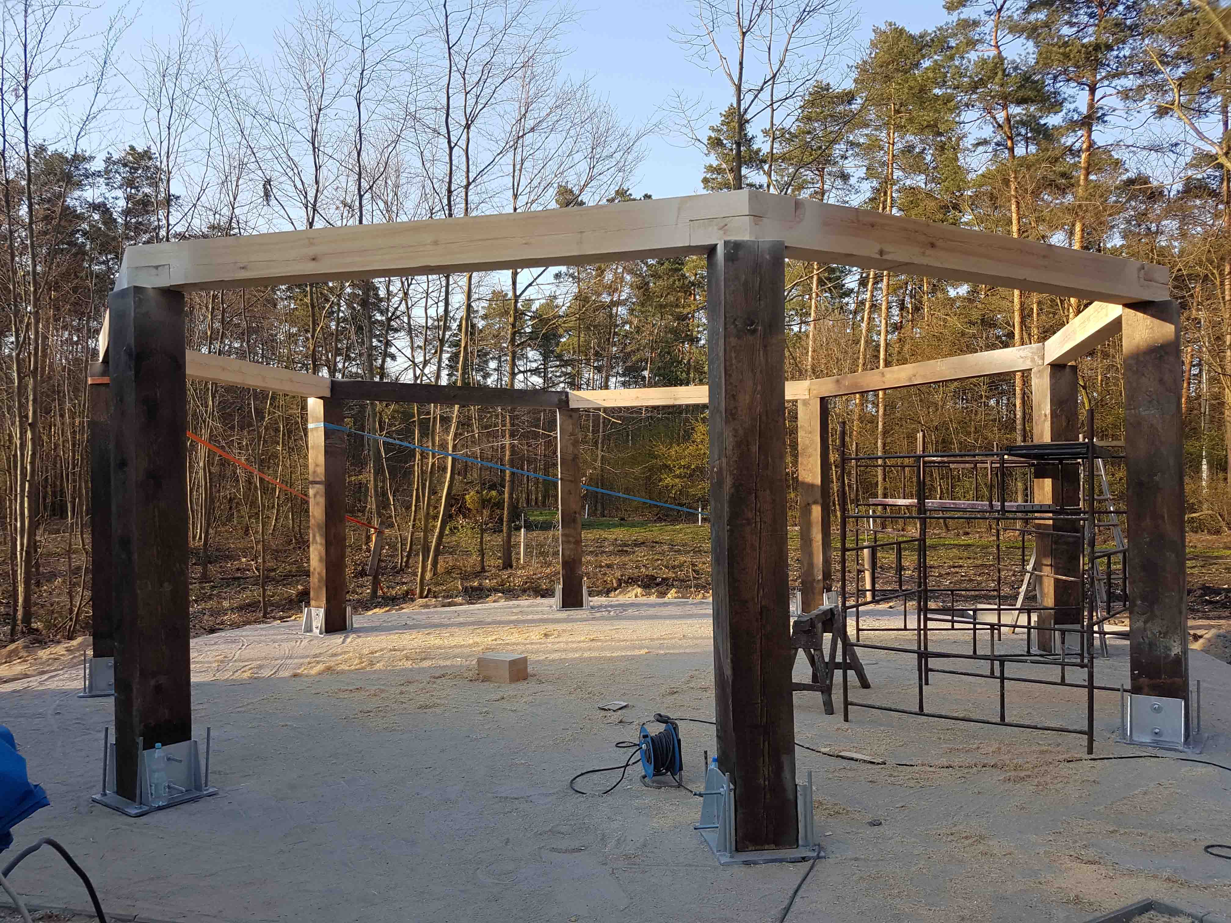 Potężna, kolosalna altana wykonana w Szkółce Leśnej o. Wężysk dla Nadleśnictwa Brzózka.