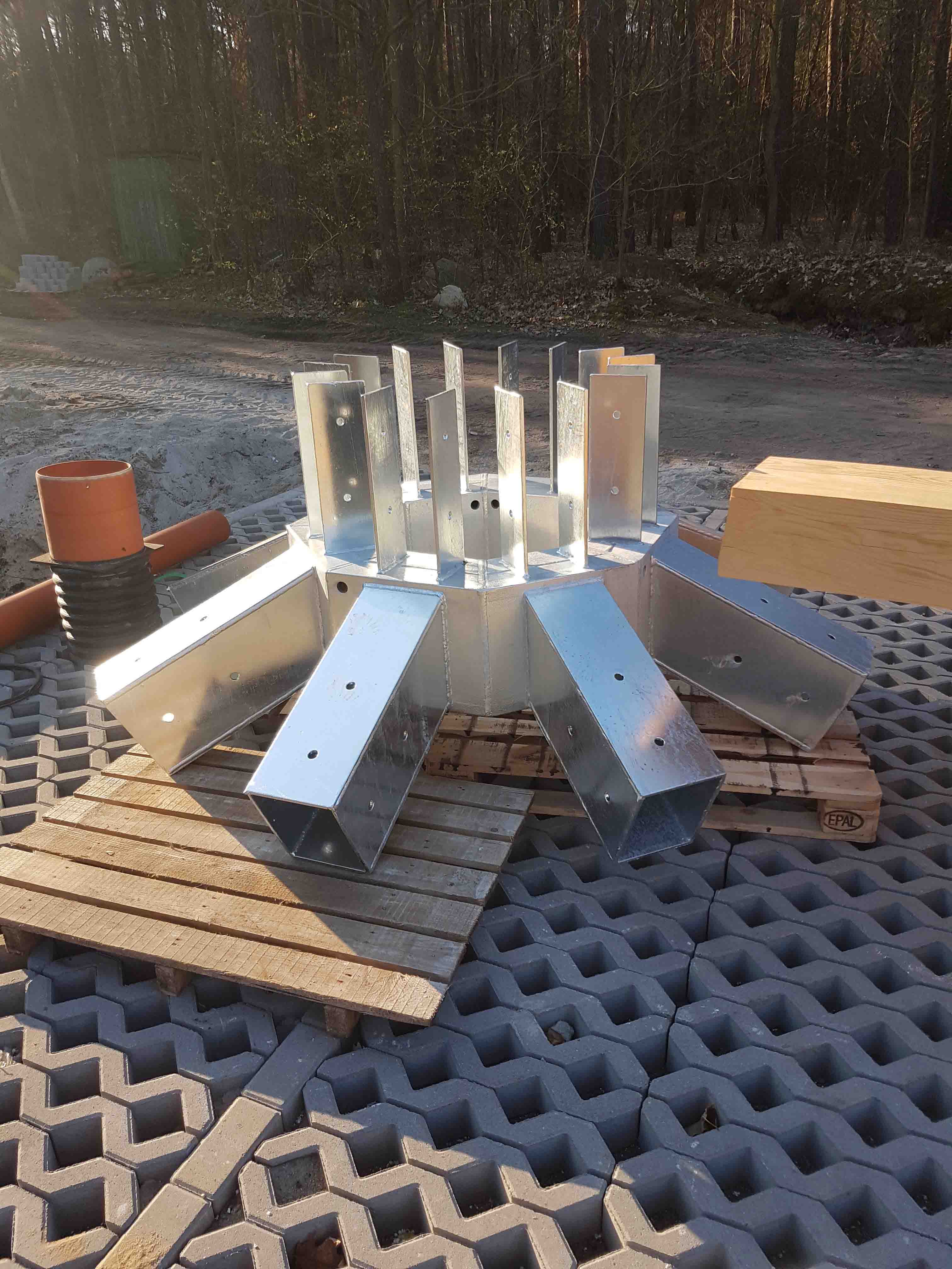 - Projekt: Ośmiokątna konstrukcja drewniana z dachem kopertowym ze świetlikiem na kalenicy