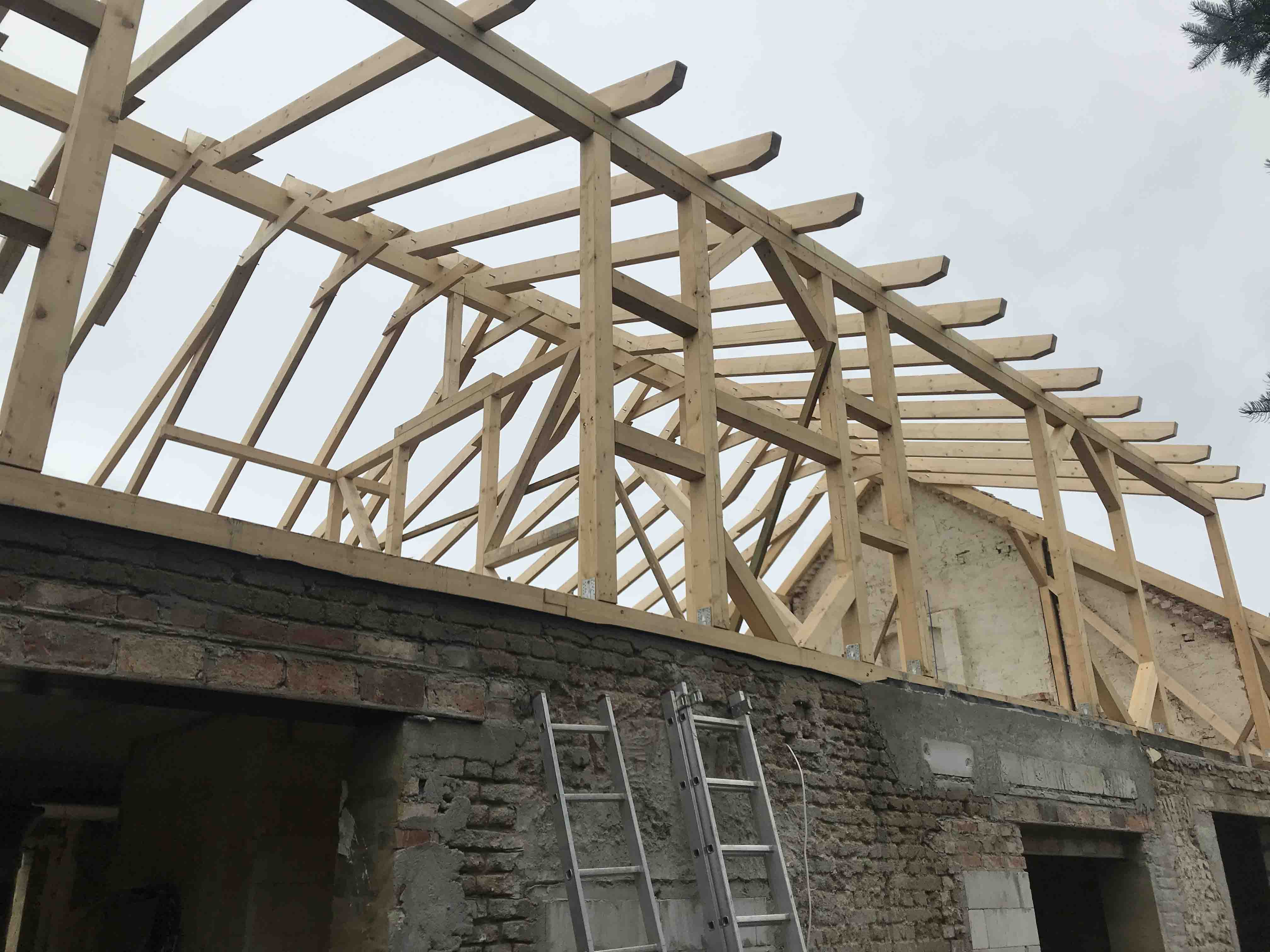 Zlikwidowanie starej więźby dachowej oraz postawienie nowej – całość wykonana z materiału KVH.